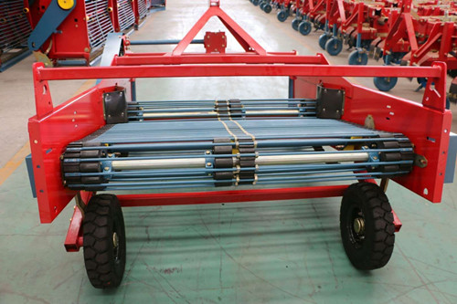 山東菏澤魯富機械紅薯收獲機,大型收獲機廠家直銷,一次可收獲雙行,大型收獲機作業時,收獲機在拖拉機的驅(拖)動下,紅薯秧與土一起被挖掘鏟鏟起;隨著機具前行,鏟起的紅薯秧薯和土被推送到輸送分離裝置上,輸送分離裝置在運行中,因不斷轉動和有序抖動,輸送分離裝置上的馬鈴薯秧薯隨著防堵塞裝置旋轉到輸送鏈向上爬行的同時,其上的土壤由于輸送鏈的抖動而被不斷的清除;秧果上升至輸送鏈高端后經左右兩側的集薯裝置被成條的鋪放在已收區地面上,以便晾曬與撿拾。