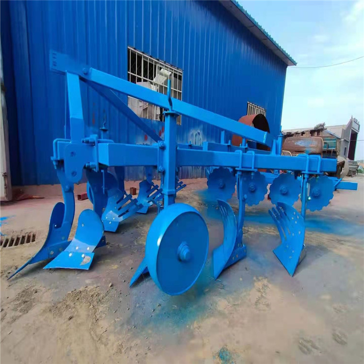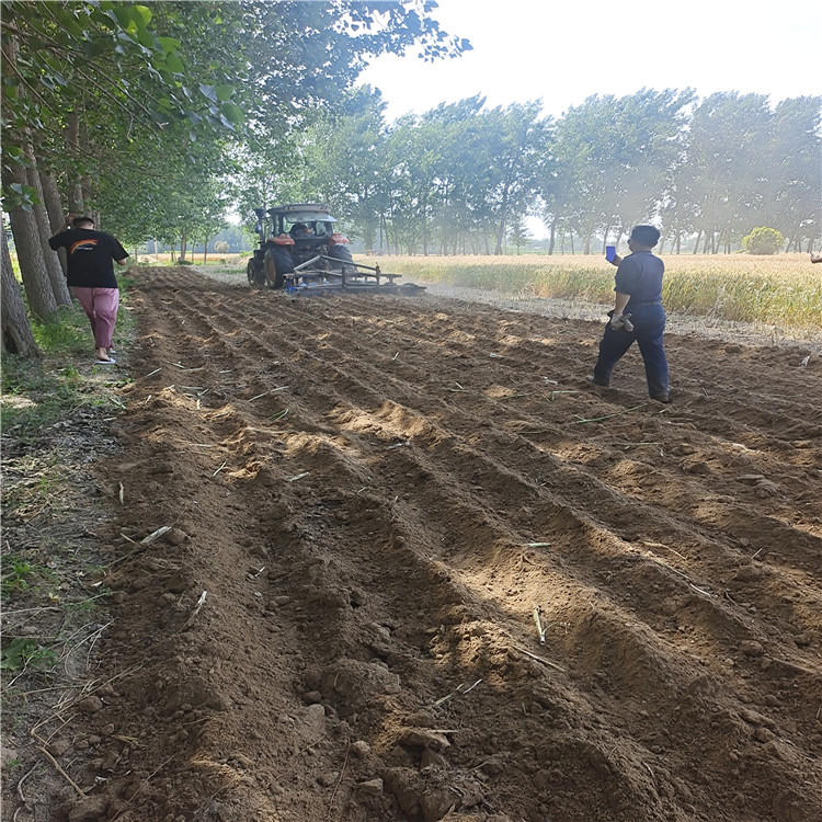 山東無墑犁生產廠家21年研發的新款無墑犁寬度可調,新型提供一種無墑溝懸掛犁,包括深耕犁和旋耕機,旋耕機設置在深耕犁尾部,深耕犁包括雙橫梁犁架,雙面犁鏵,連接件,單面犁鏵,限深輪,雙橫梁犁架上橫向設置有橫梁,雙橫梁犁架左右兩側設置有限深輪,雙橫梁犁架前端設置有雙面犁鏵,橫梁上固定有連接件,后面有新型平傷器。平墑器可以把深翻過的傷溝鏟平如圖所示:
